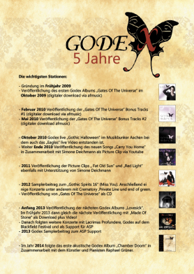 es ist jetzt genau 5 Jahre her seit das erste Godex Album Gates Of The Universe veröffentlicht wurde. In der Zeit haben wir einiges geschafft und viele tolle Konzerte gespielt. Hier ein kleines Bild mit den wichtigsten Stationen.